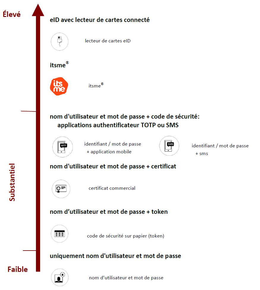 - Les services en ligne de l’Administration proposent toutes les méthodes d’authentification (« clés numériques ») qui mettent à disposition l'« Identification CSAM », pour l’accès de leurs utilisateurs